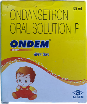 Ondem Syrup is a medicine given to children to help treat nausea and vomiting. It is mainly given to treat nausea and vomiting associated with surgery, chemotherapy, radiotherapy, and stomach/intestinal infection. It also helps treat vomiting that is caused as a side effect of medicines like painkillers.